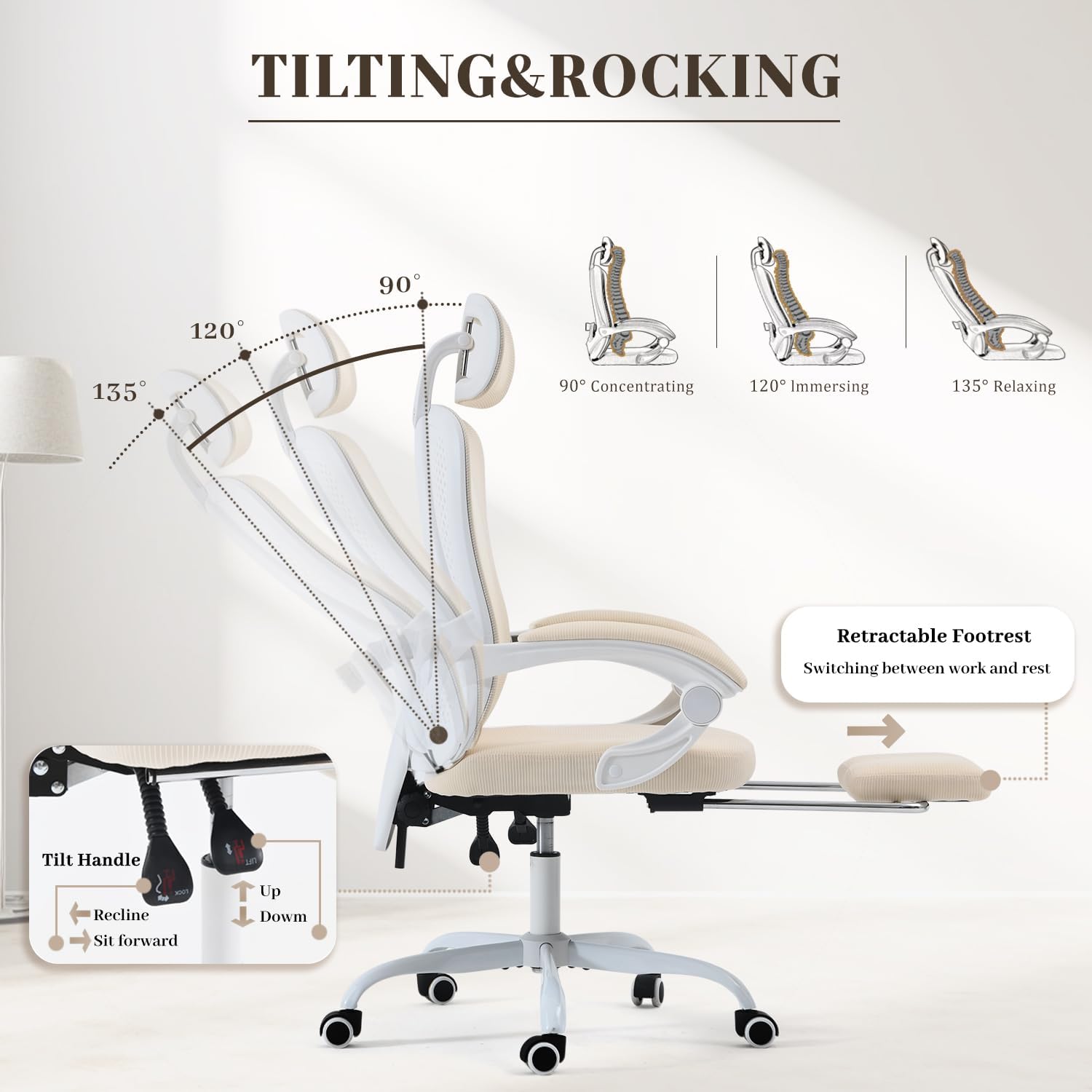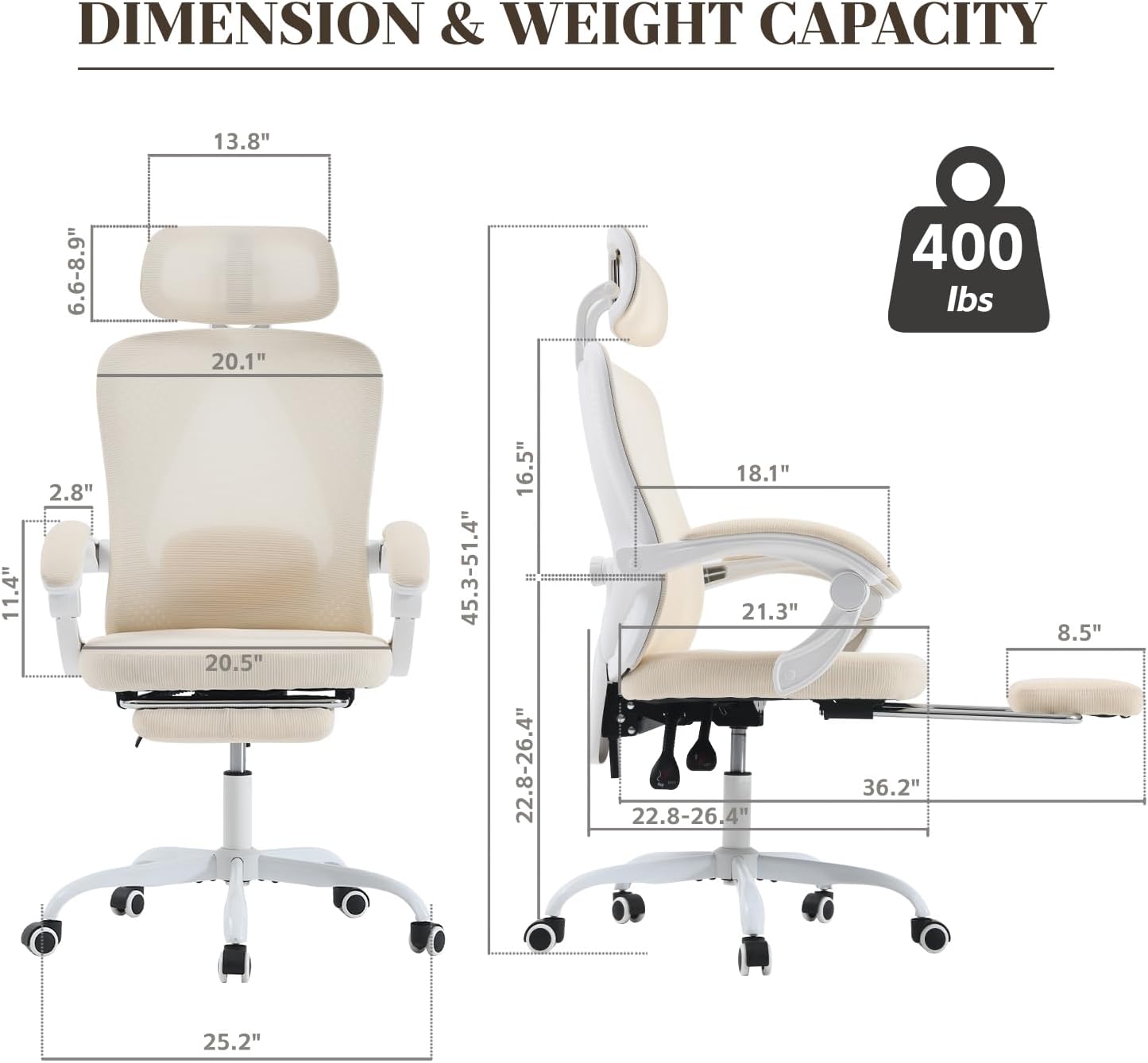 Introducing the ultimate ergonomic office chair designed for maximum comfort and support – the White Computer Chair with Retractable Footrest. This high-quality chair features adjustable lumbar support to ensure proper spine alignment and reduce back pain. With a impressive weight capacity of 400LBS, this chair is suitable for users of all sizes.