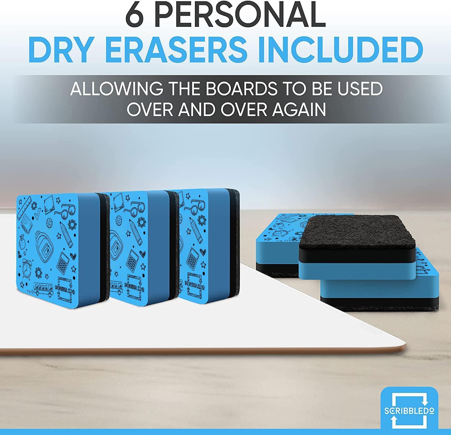 Introducing the Scribbledo 6 Pack Small White Board Dry Erase Classroom Pack! These 9″x12″ personal whiteboards are perfect for students, teachers, and anyone in need of a portable and convenient writing surface. The pack includes 6 mini whiteboard erasers, making it easy to quickly wipe away notes and drawings.
